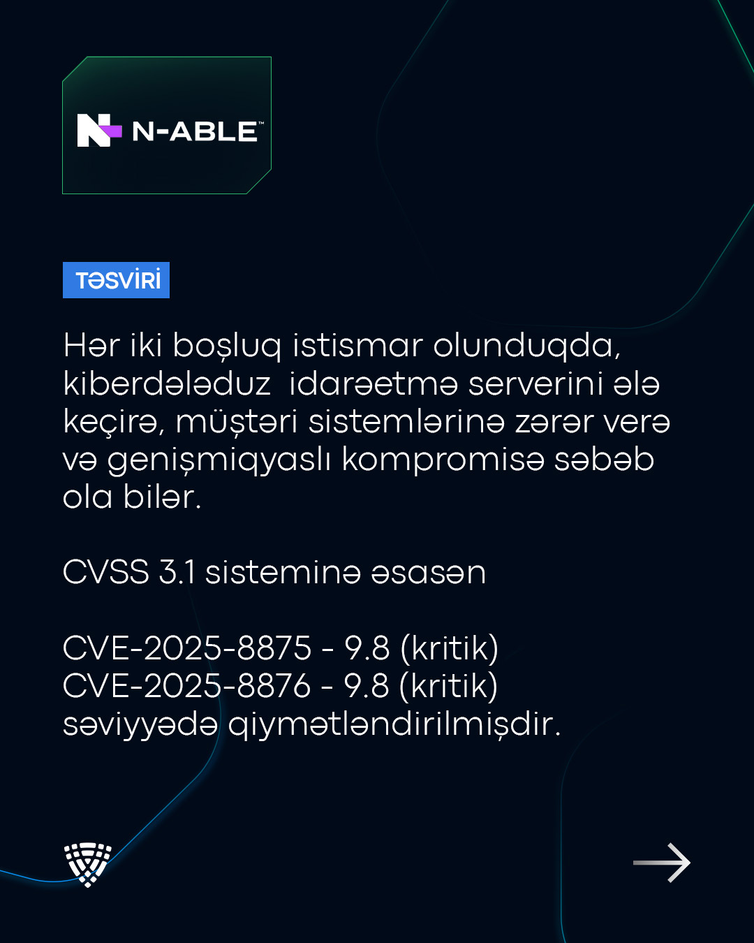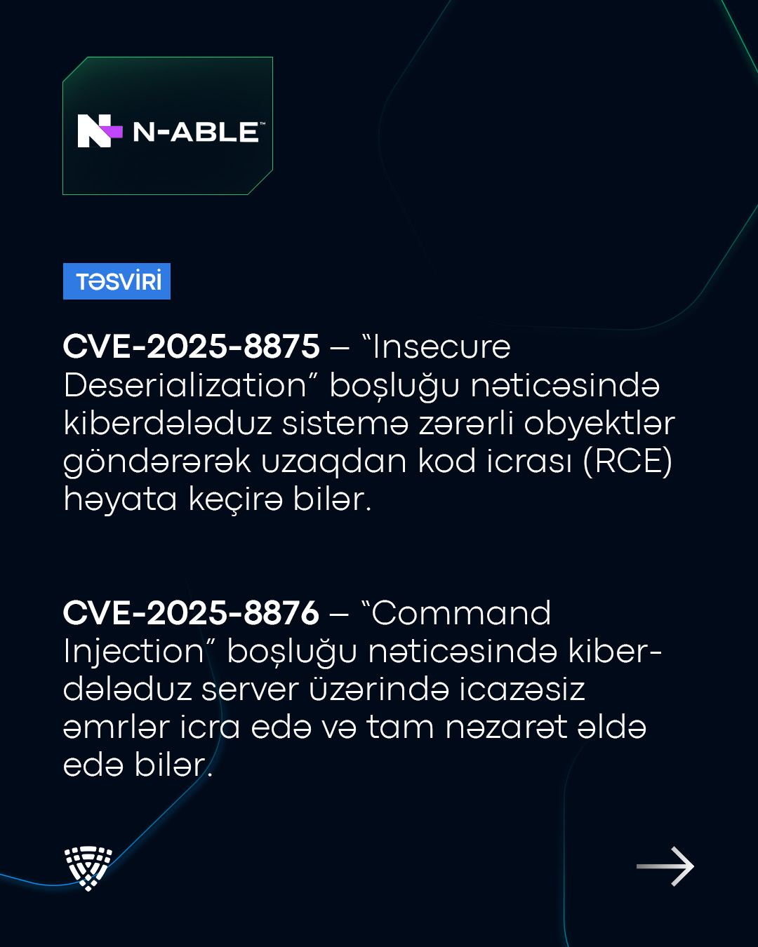 “N-able N-Central” platformasında boşluqlar (CVE-2025-8875, CVE-2025-8876) aşkar olunub.