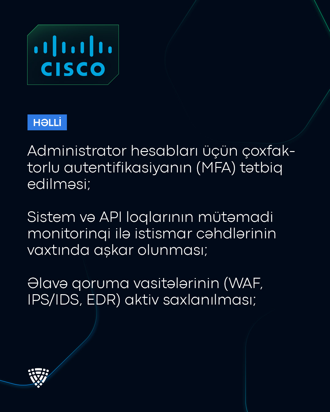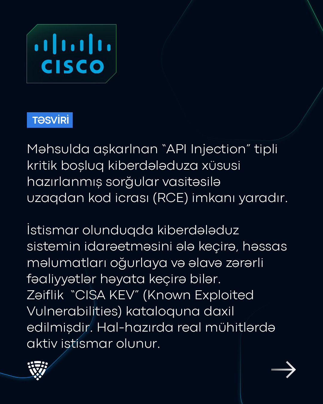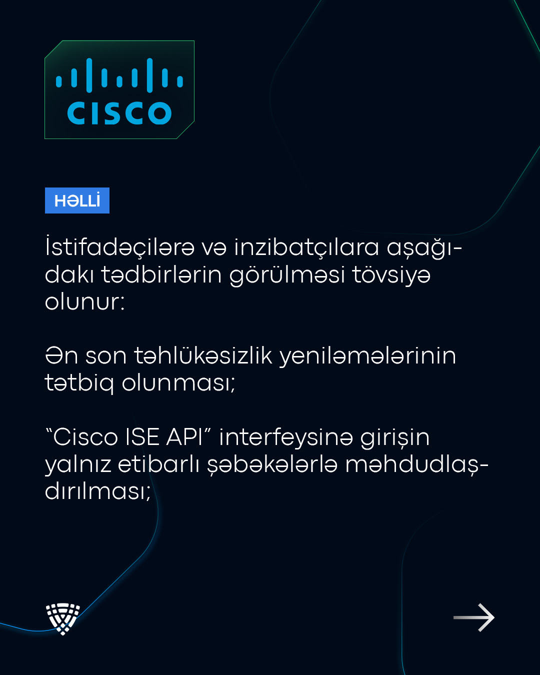 “Cisco Identity Services Engine (ISE)” məhsulunda boşluq (CVE-2025-20337) aşkar olunub.