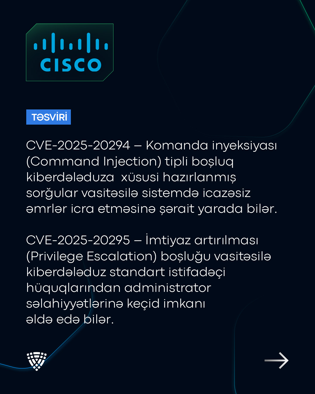 “Cisco UCS Manager” məhsulunda boşluqlar (CVE-2025-20294, CVE-2025-20295) aşkar olunub.