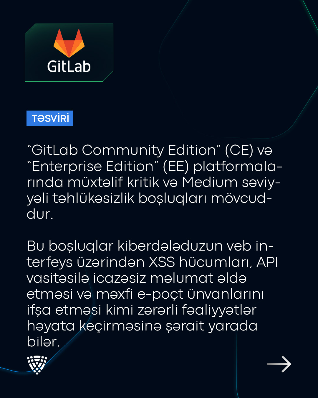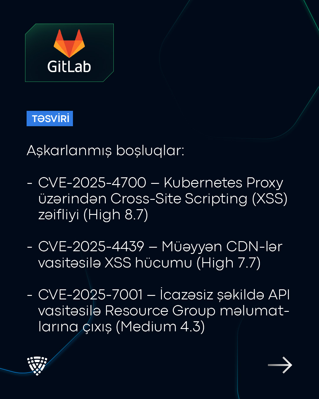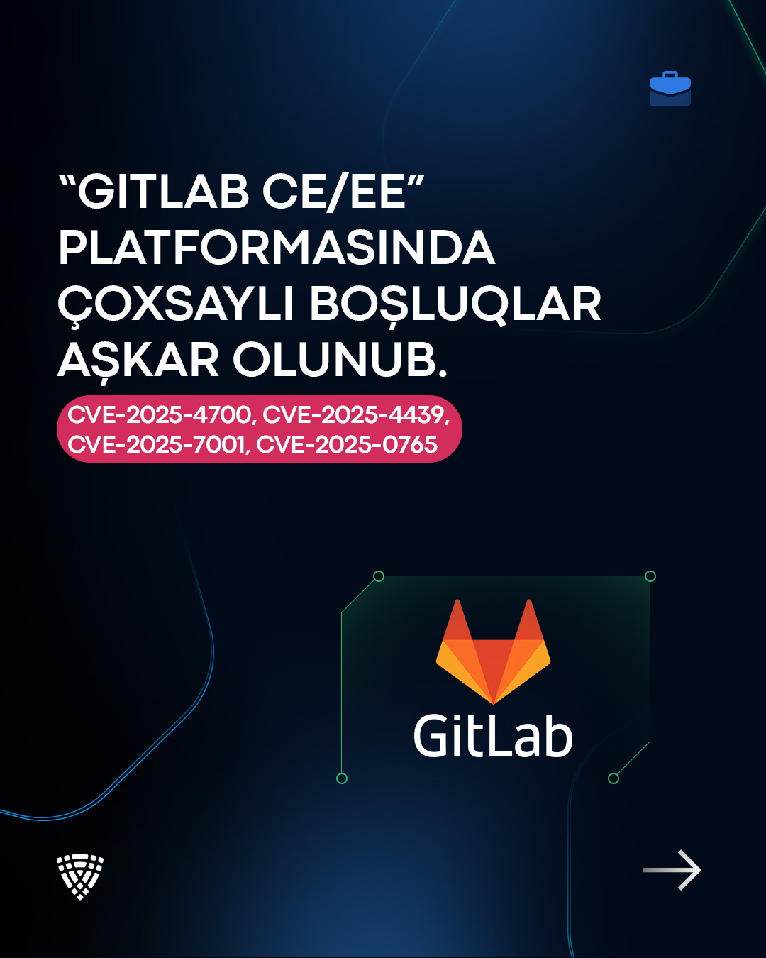 “GitLab CE/EE” platformasında çoxsaylı boşluqlar (CVE-2025-4700, CVE-2025-4439, CVE-2025-7001, CVE-2025-0765) aşkar olunub.