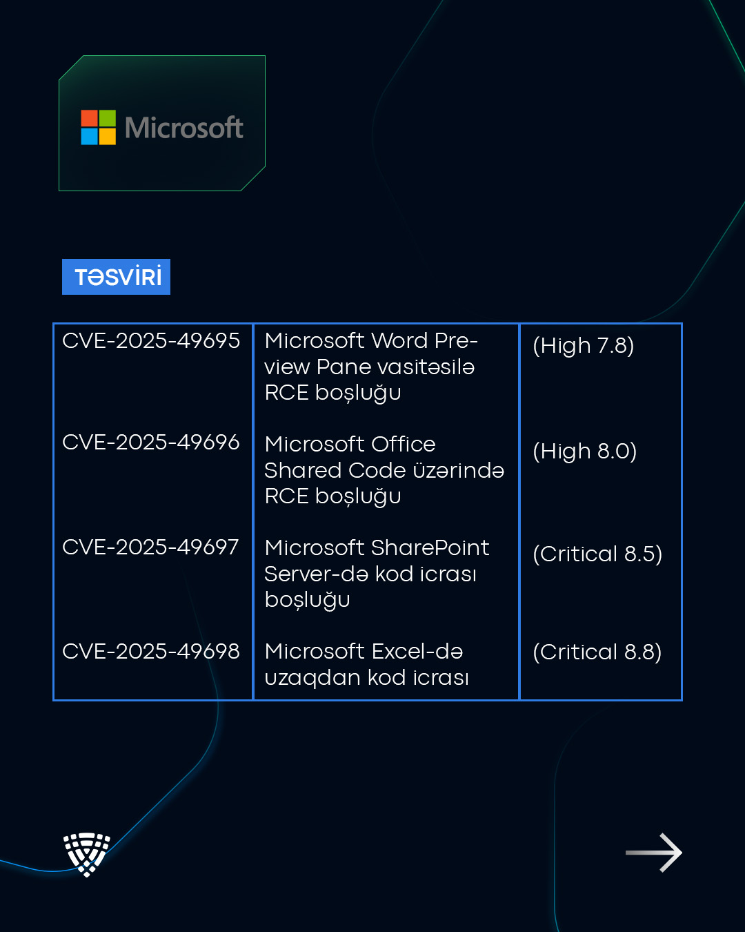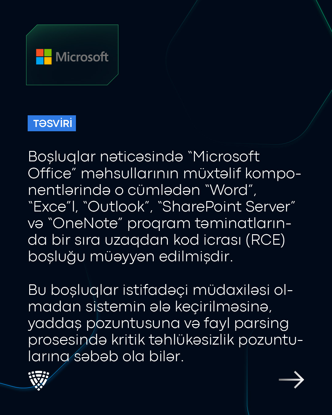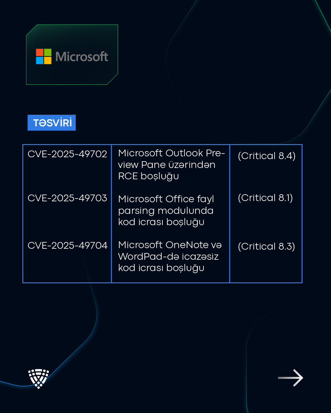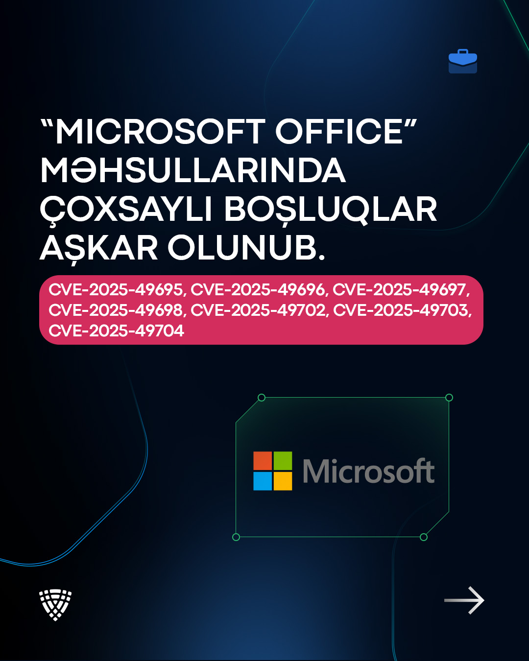 “Microsoft Office” məhsullarında çoxsaylı boşluqlar (CVE-2025-49695, CVE-2025-49696, CVE-2025-49697, CVE-2025-49698, CVE-2025-49702, CVE-2025-49703, CVE-2025-49704) aşkar olunub.