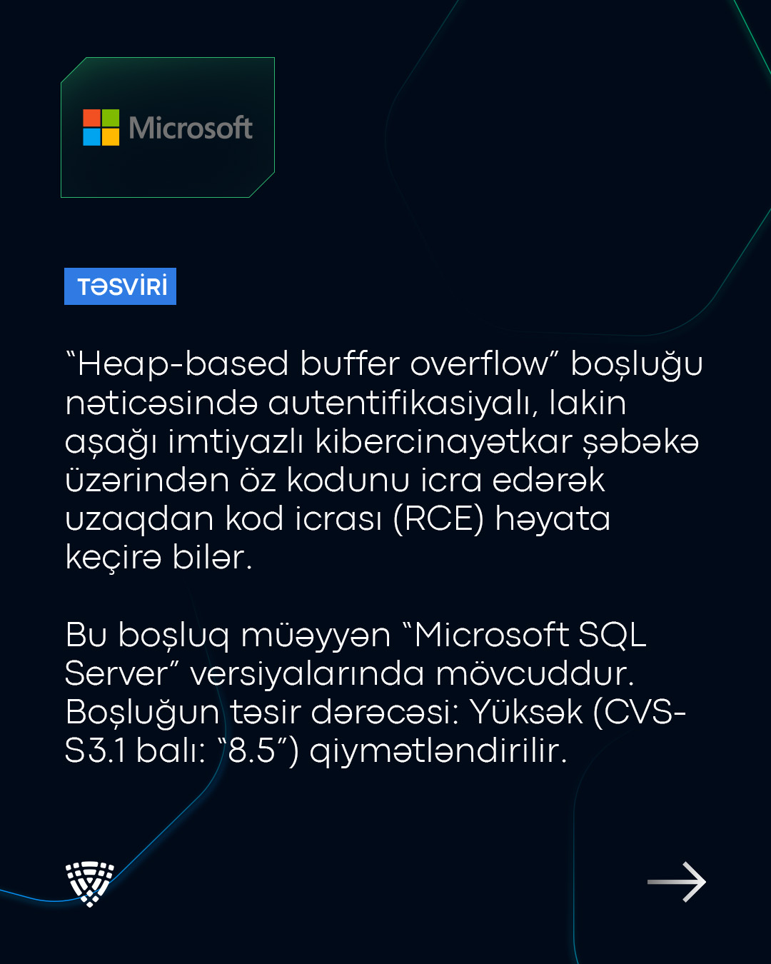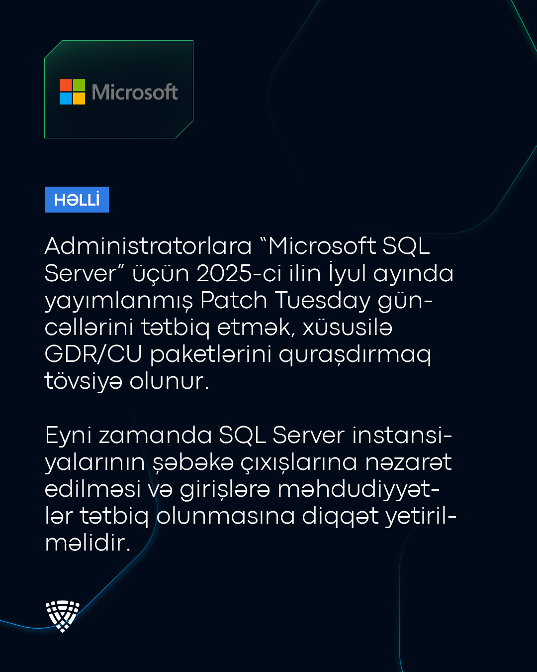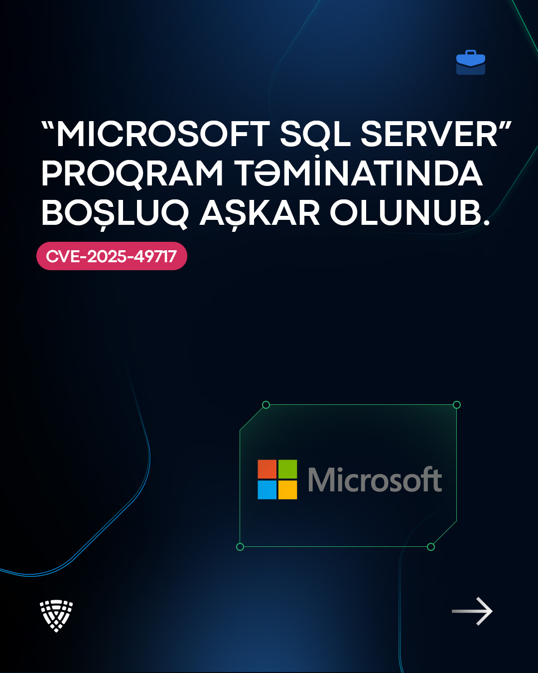 “Microsoft SQL Server” proqram təminatında boşluq (CVE-2025-49717) aşkar olunub.
