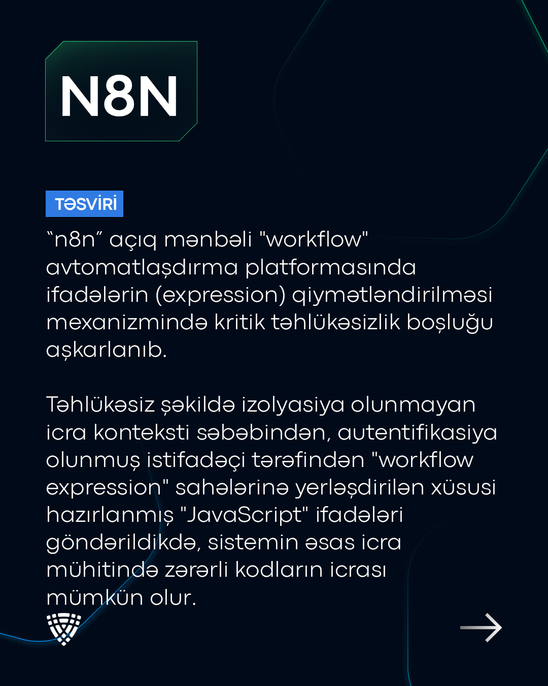 “n8n” platformasında kritik uzaqdan kod icrası boşluğu (CVE-2025-68613) aşkarlanıb.