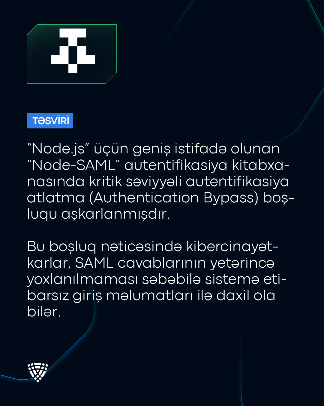 “Node-SAML” kitabxanasında autentifikasiya sistemi boşluğu (CVE‑2025‑54369) aşkar olunub.