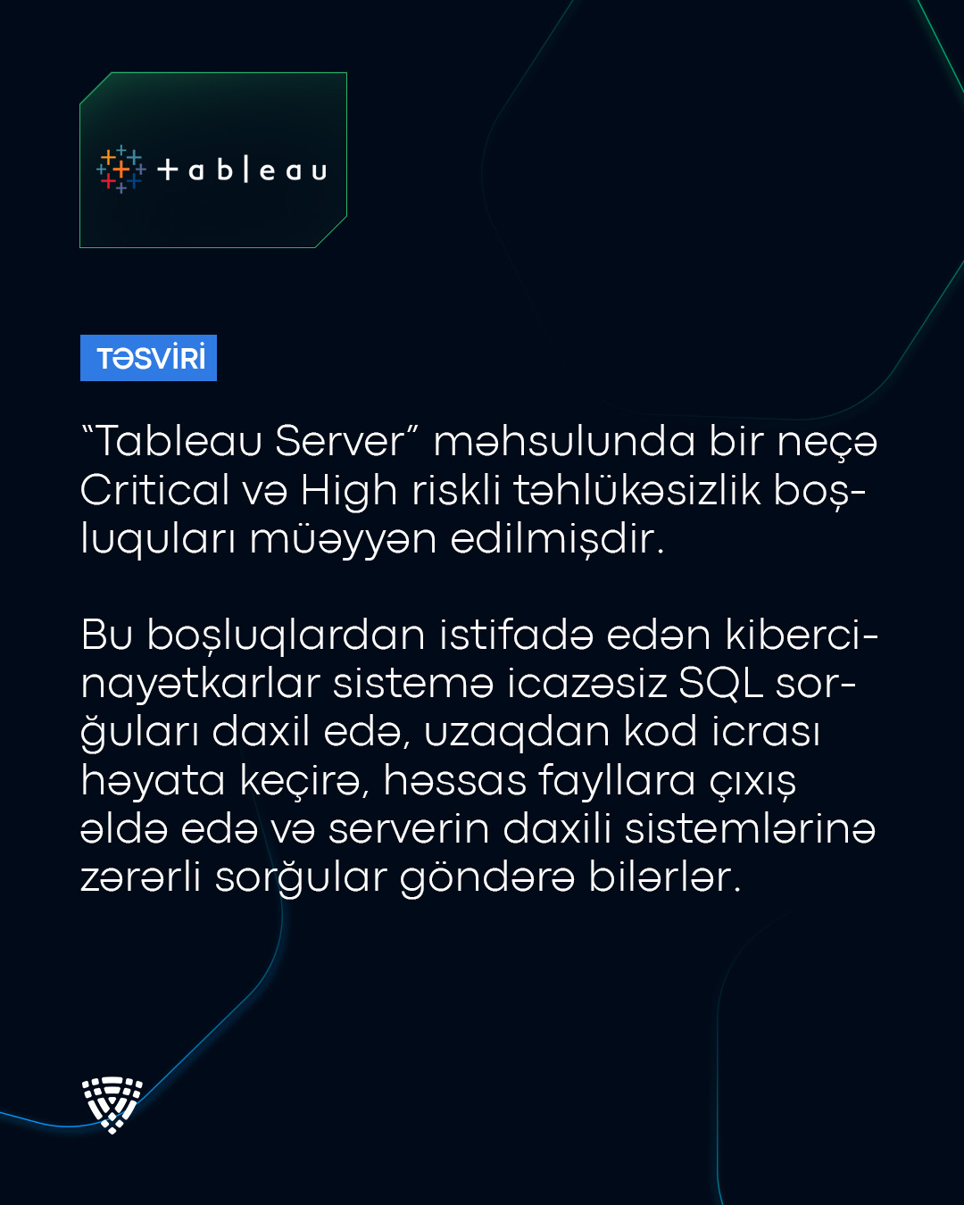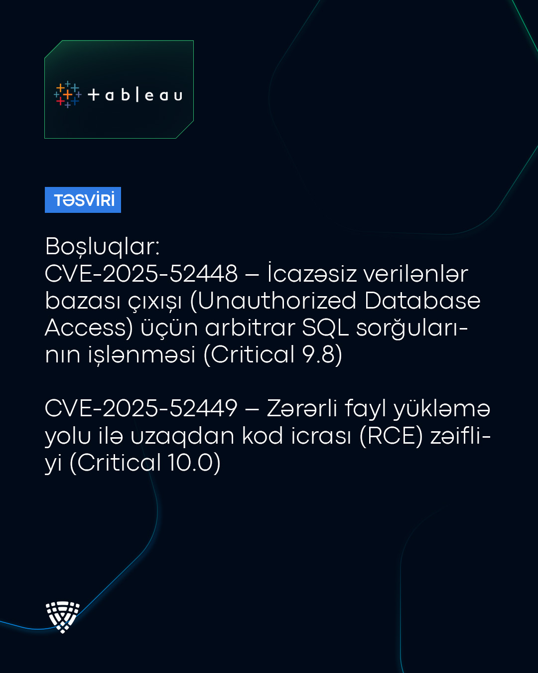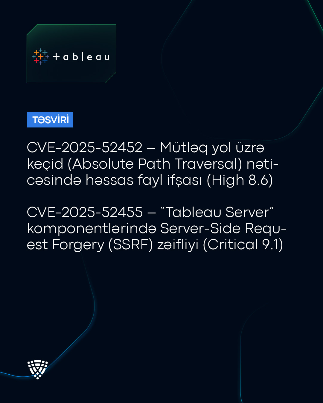 “Tableau Server” məhsulunda çoxsaylı boşluqlar (CVE-2025-52448, CVE-2025-52449, CVE-2025-52452, CVE-2025-52455) aşkar olunub.