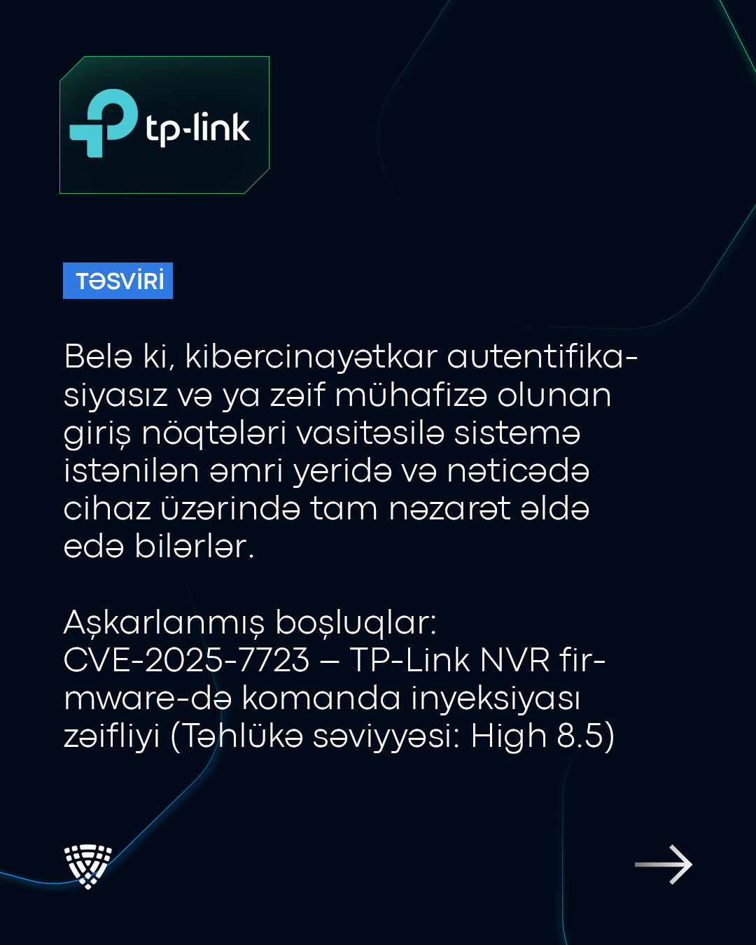 “TP-Link” NVR cihazlarında çoxsaylı boşluqlar (CVE-2025-7723, CVE-2025-7724) aşkar olunub.