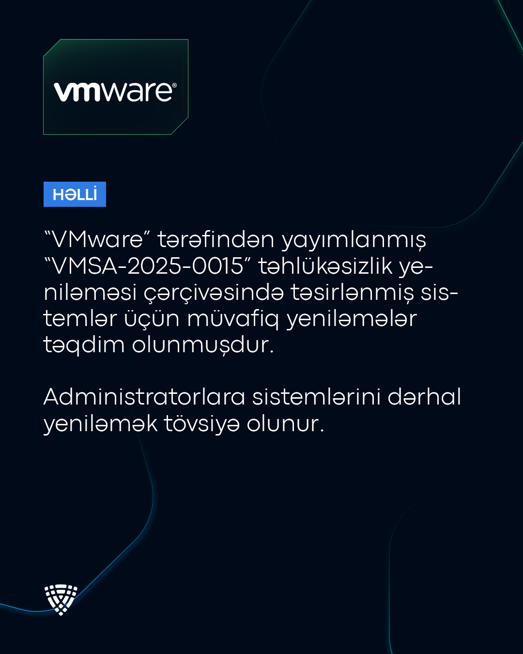 “VMware” proqram təminatında boşluq (CVE-2025-41236) aşkar olunub.