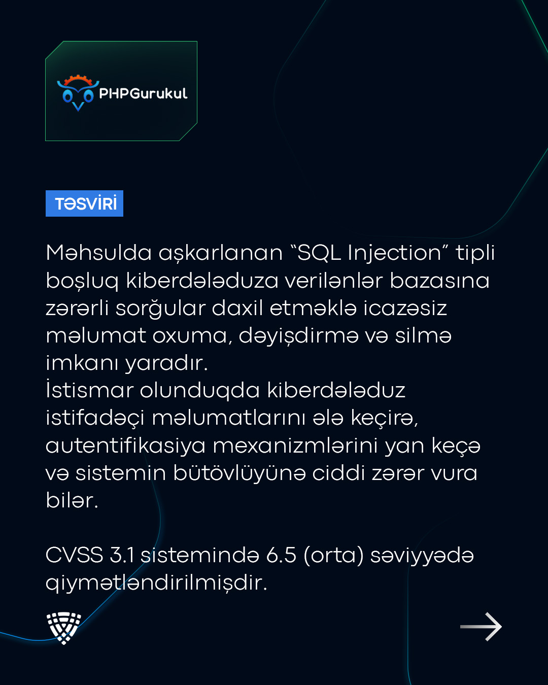 “PHPGurukul User Management” məhsulunda boşluq (CVE-2025-9756) aşkar olunub.