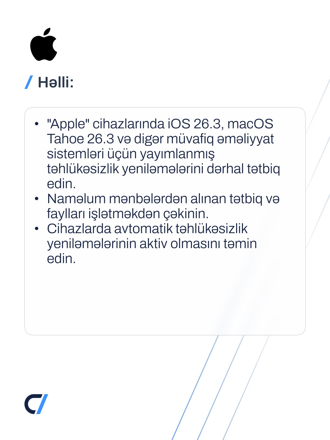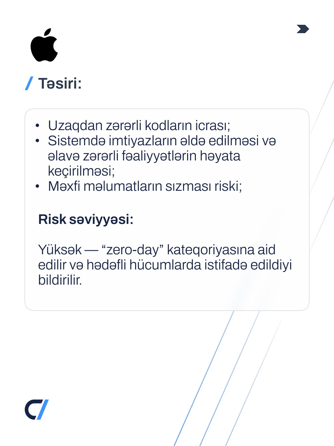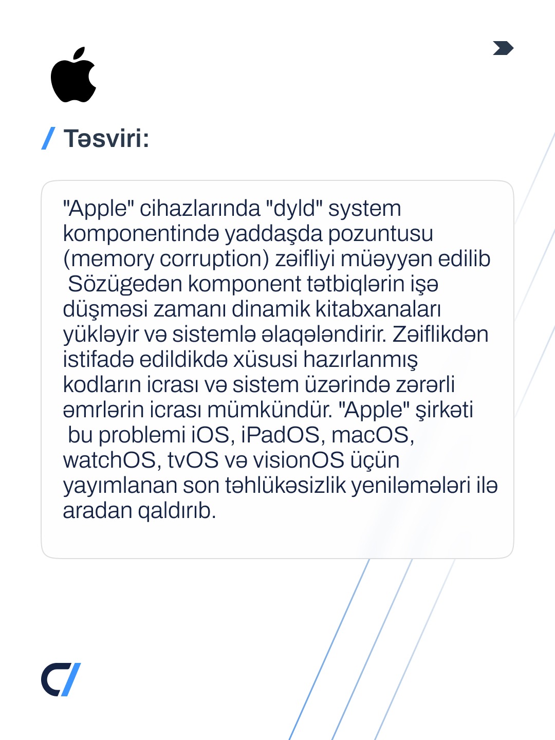 “Apple" cihazlarının əməliyyat sistemi komponentində təhlükəsizlik boşluğu (CVE-2026-20700) aşkarlanıb.