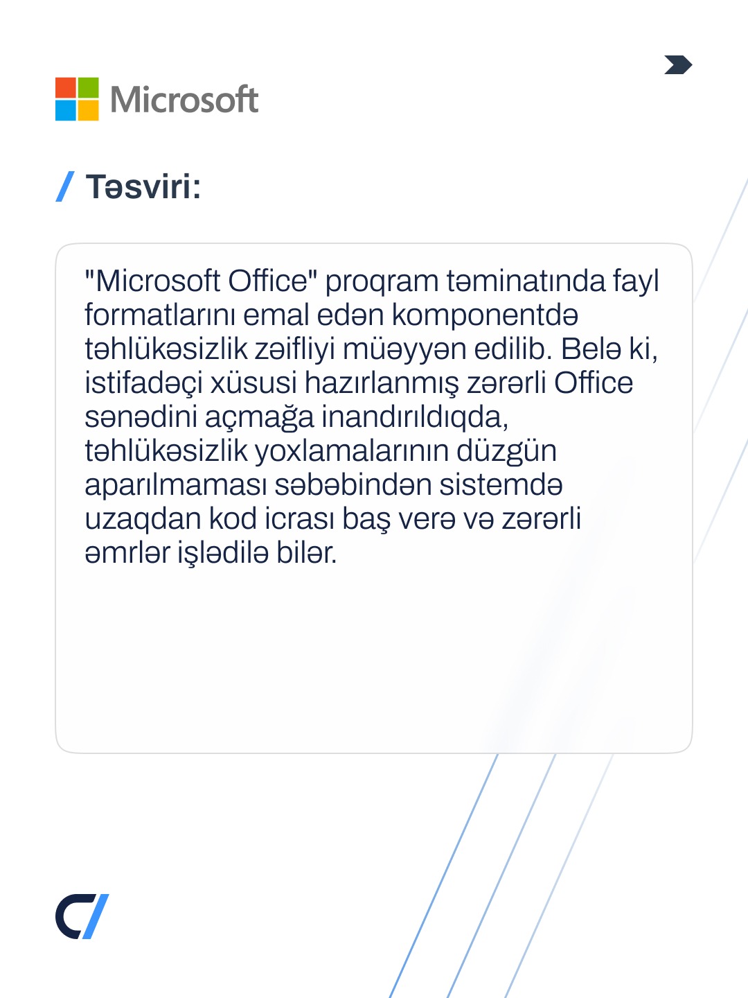 “Microsoft Office” proqram təminatında uzaqdan kod icrası riski yaradan təhlükəsizlik boşluğu (CVE-2026-21511) aşkarlanıb.