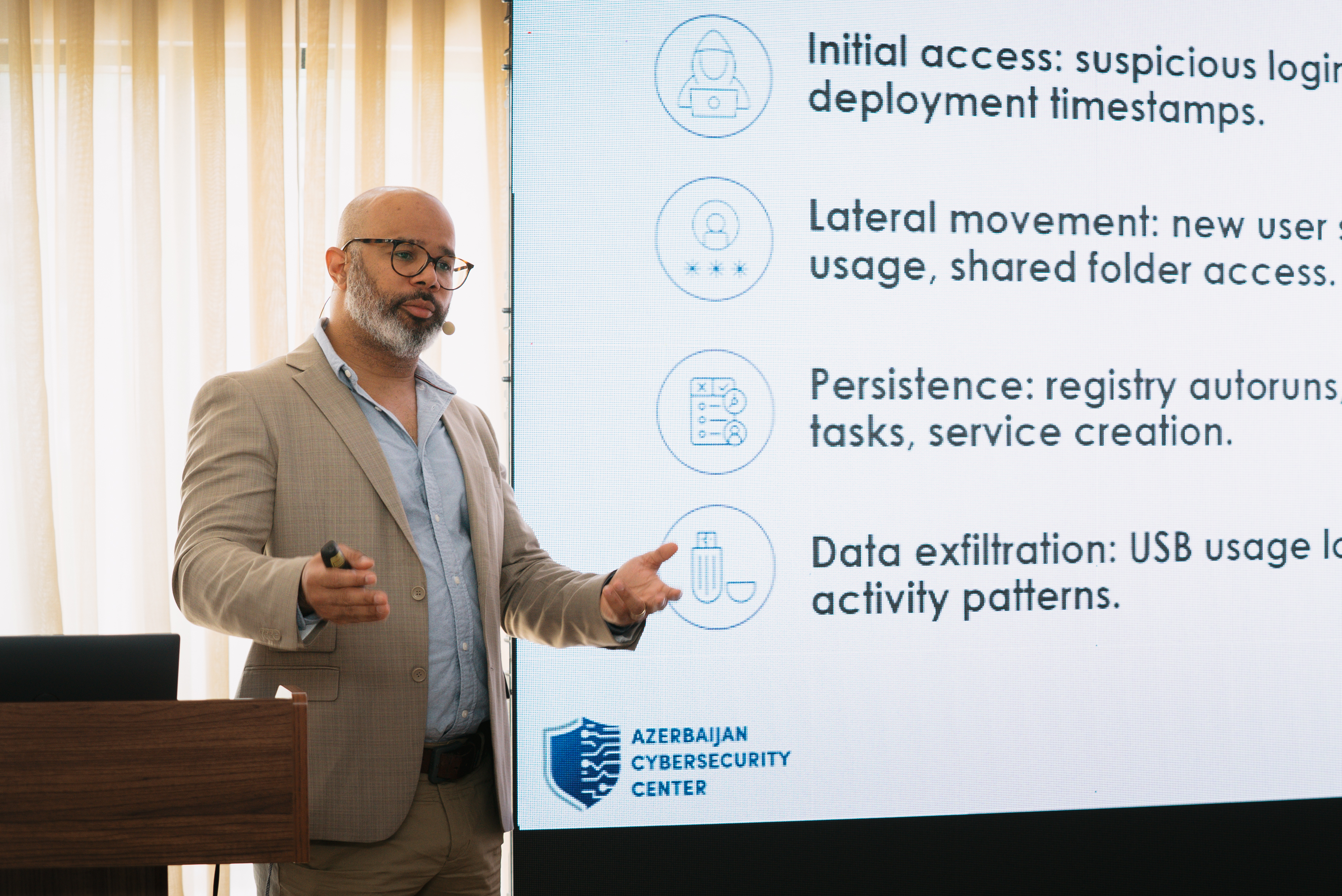 Seminar iştirakçılarını salamlayan Elektron Təhlükəsizlik Xidmətinin rəisi Samir Rəsulov rəqəmsallaşmanın fonunda artan kibertəhdidlərə qarşı önləyici tədbirlərin və informasiya təhlükəsizliyinin hərtərəfli təminatının dövlətimiz üçün kritik önəm kəsb etdiyini vurğulayıb. İnnovasiya və Rəqəmsal İnkişaf Agentliyinin (İRİA) İnformasiya təhlükəsizliyi departamentinin müdiri Şahmar Hacıyəhyayev çıxışı zamanı təcrübə mübadiləsi üçün şərait yaradan bu seminarın “Azərbaycan Respublikasının informasiya təhlükəsizliyi və kibertəhlükəsizliyə dair 2023 – 2027-ci illər üçün Strategiyası”nda müəyyən edilmiş tədbirlərin reallaşdırılması istiqamətində vacib addım olduğunu diqqətə çatdırıb.