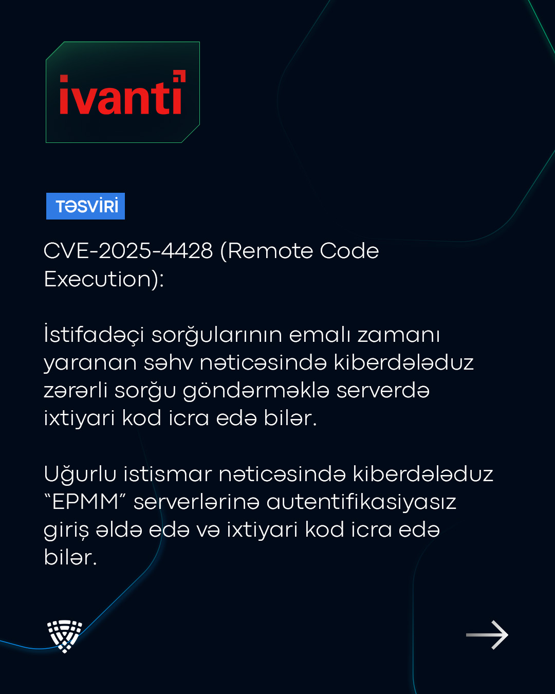 “Ivanti Endpoint Manager Mobile (EPMM)”də boşluq (CVE-2025-4427 & CVE-2025-4428)aşkar olunub.